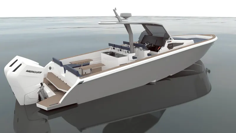 The PR 36C's cabin features a queen size bed, an enclosed standup shower with head and ample storage space, perfect for spending weekends onboard. Access to the sea is made easy with two large swim platforms on the transom. The spacious deck offers a large sun-bed forward and the aft layout has four different configurations to choose from. Options to work with the Alpha Tango naval architects to fully customize the vessel to exact requirements, options include a wet bar with an icemaker, extra seats under the hardtop for traveling with a big group, open space for fishing or diving gear, stove and sink area for cooking with family and friends, this boat can be made completely unique by adapting to any lifestyle.
