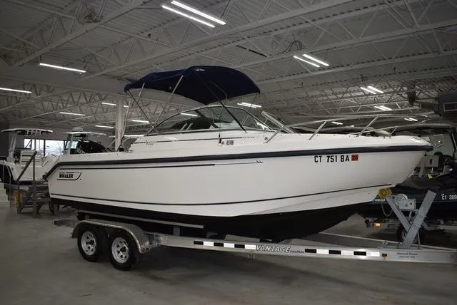 You are viewing a local trade in on a new boat. 2003 Boston Whaler 210 Ventura dual console in terrific condition. Repowered in 2025 with a new Suzuki 200hp outboard, stainless steel prop, only 9 hours of use and warranty good till 3/25/2032. Motor has the upgraded Suzuki Precision Control (SPC), is and advanced computer-based "Drive-by-Wire" throttle and shift system that replaces the mechanical cables with electronic wiring. It provides smoother, more precise, and instantaneous throttle response, particularly in low RPM ranges and when maneuvering in close quarters. Motor also comes with a "troll mode" feature for slow speed control. 2023 I-Beam aluminum trailer with spare tire included and also in great condition. Features include a Garmin 94sv GPS/Fishfinder, Garmin VHF, Bluetooth stereo with 4 speakers Bimini top w/ boot, Bow and cockpit cover, Stainless steel tow bar, Transom freshwater shower, Walk-thru transom, Transom boarding ladder, Raw water washdown, transom fold down bench seat, Back to back lounger seat portside w/ under storage, Under gunnel horizontal rodholders, Trasom livewell, Starboard side floor fishbox, Compass, Walk-thru windshield, Windshield wiper, Porta potti head, Dual battery w/ switch, Cushioned bow seating w/ under storage, High bow rail , anchor locker w/ anchor and line, self bailing cockpit, fresh coat of bottom paint and more. We are Diamond Marine of Connecticut, in business for over 40 years and run a full service shop along with new and pre-owned boat sales. We are also the largest Trailer dealer on the east coast. Contact us for all of your boating needs. Financing is available and local trades are welcome. This boat will not last, contact us today.