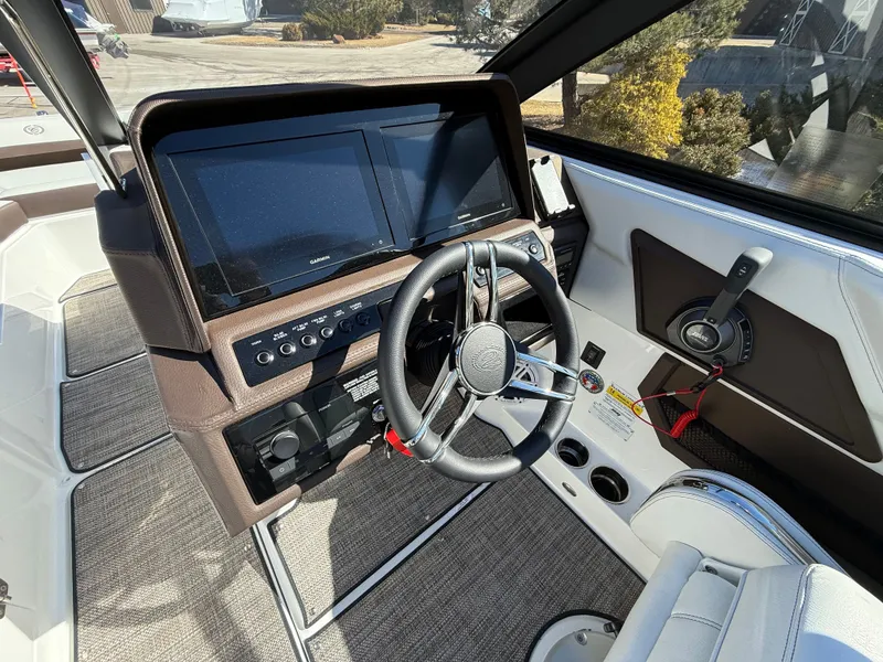 Draped in a Rich Ebony, Graphite Gray, and White exterior with a custom three-color graphic and swim platform accent, the R6 turns heads at every marina. The refined Summit/Cocoa interior pairs beautifully with premium finishes, setting a new standard in luxury boating.