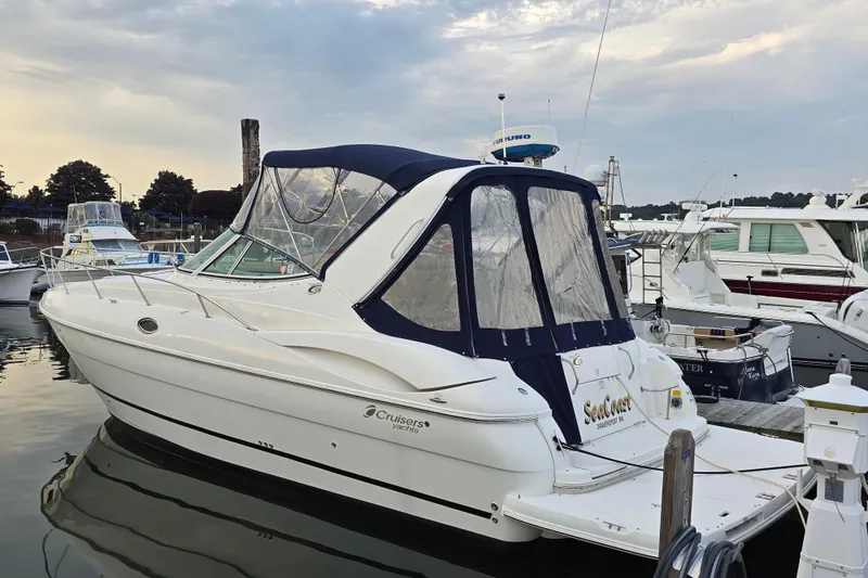 The 2004 Cruisers Yachts 320 Express is a perfect blend of style, comfort and performance. Whether you're entertaining friends on the water or taking a weekend getaway, this express cruiser delivers a smooth ride and spacious accommodations. With twin MerCruiser 260HP engines, she offers solid cruising power and reliable performance.