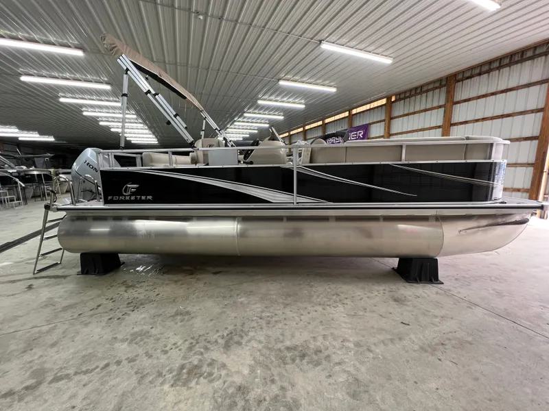2023 Forester 2238 C CRUISE SPORT TOON, New Forester 2238 C Pontoon w/ 150 HP Honda & Power Steering at For Sale at Fay's Marina, La Porte, IN. MSRP $55,415, CLEARANCE PRICED AT $41,525 (+ Freight Tax Title Fees) Perfect for fishing, family fun, and relaxation. This is our most popular design, both Fishing and Fun co-exist in this design, and it does a number of things amazingly! Whether you want some rest and relaxation, or exploring with some family tube towing, this pontoon offers lots of lounge space and enough options to keep the comfort factor high. Upgrades Include: Honda Pre-Rig Panther Electric Power Steering Custom Mooring Cover 5-Year Vantage Protection Package Dual 12-gal Gas Tanks Dinette Table Honda BF150 HP Honda KEY FEATURES - Your Perfect Summer Companion - Experience unparalleled luxury and performance with the new Forester 2238 Cruise. This stunning sport pontoon boat is powered by a robust VTEC 150 HP Honda engine, ensuring you enjoy smooth, powerful rides whether you're cruising calm lakes or tackling open waters. This coupled with the family friendly electric Panther Power Steering so even grandma can drive and tube easily. Enjoy the latest design and features, ensuring modern comfort and reliability. Whether you're looking to entertain guests, enjoy a peaceful day on the water, or embark on thrilling aquatic adventures, the Forester 2238 Cruise offers versatility, style, and top-notch performance. Don't miss out on this exceptional offer. Contact us today to schedule a viewing and see why this new Forester 2238 Cruise is the perfect addition to your summer plans! S#4670 BLACK/TAN Exterior Color: BLACK | Interior Color: TAN | Body Style: Sport Toon