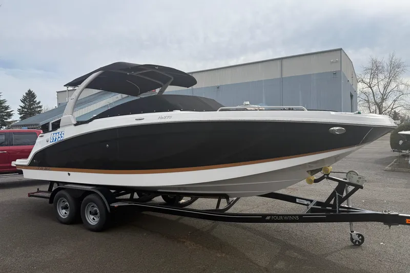 2019 Four Winns HD270, a deck boat that perfectly blends style and performance. With an overall length of 26.5 feet, this vessel boasts a sleek modified Vee hull made from durable fiberglass, ensuring both stability and agility on the water. Powered by a robust 300 hp Mercruiser Bravo3 drive engine, this boat promises an exhilarating experience, whether you're cruising or engaging in water sports. The inboard/outboard configuration enhances maneuverability, making it ideal for various activities. Designed for comfort, the HD270 features a well-appointed head, ensuring convenience during your outings. Its thoughtful design allows for a spacious layout, perfect for entertaining friends and family. Experience the joy of boating with the Four Winns HD270, where every detail is crafted for an unforgettable adventure on the water.