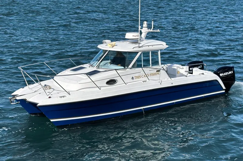 Terrific riding catamaran hull, very dry and stable platform for fishing and cruising in various conditions. Safe, easy boarding from transom step. Protected helm area with hard top and windshield. In 2021, complete re-power with New Twin Suzuki 150 HP outboard engines. Updated electronics including FLIR camera for infrared & thermal imaging. Also included is the custom trailer! Two boat owner ready for offers! Easy to see in San Diego.