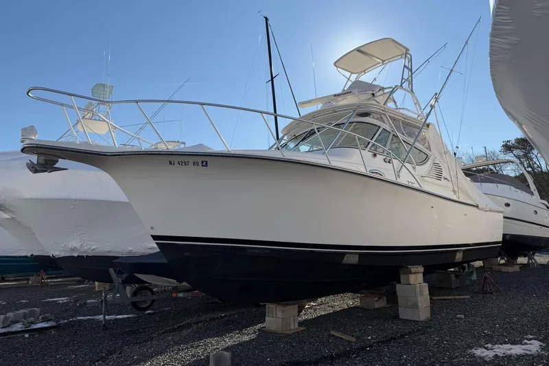 This 2008 30' Express is a well-equipped, offshore-ready performer powered with twin Cummins QSB 5.9s rated at 380 HP each and a Next Gen generator 3.5kw. She cruises comfortably around 24-25 knots while burning an efficient 24 gallons per hour. She features a marlin tower with upper helm steering ,Rupp outriggers, electric Hubbell reel outlets, underwater lights, large insulated fishboxes, livewell, bait prep station, and abundant rod holders throughout the massive cockpit.