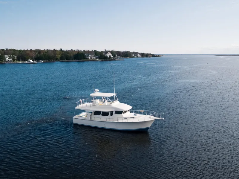 Down below the cabin offers two nicely appointed staterooms. Adjoining the staterooms is a roomy head with a full shower enclosure. Up above you will find two helm stations, one inside and one above in the flybridge area. The salon is fully equipped including a sizeable sofa necessary for those long cruising days. The cockpit area will include a grill, refrigerator, and plenty of room for your guests. Don't worry...you will still have enough room in the cockpit for your big catch of the day!