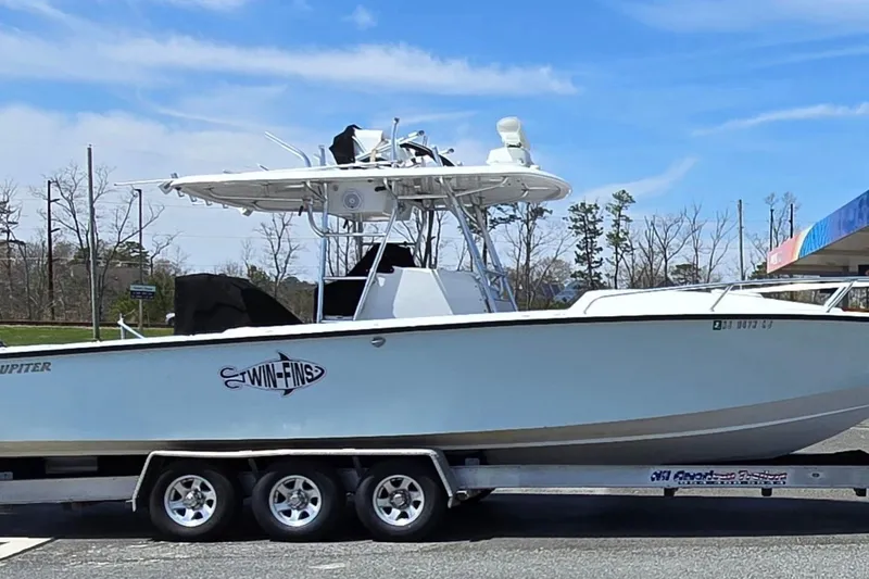 New On Market!!! Want to go offshore in a fast, comfortable and safe boat? This 1999 Jupiter 31 Cuddy was originally custom built for the founding owner of Jupiter Yachts. The leaning post battle station is unique, built to his specific design. With a collapsible tower, a 3 axle trailer and a proven hull, you could hitch it up, run to Lauderdale and fish or dive Tuna Alley and the Wall in Bimini, run to the Jersey Canyon or fish the Bay with your family. These boats are some of the best-built, most seaworthy offshore and inshore fishing machines ever made. Priced new with these options at nearly $750,000, Twin Fins represents a real value at a fraction of that.