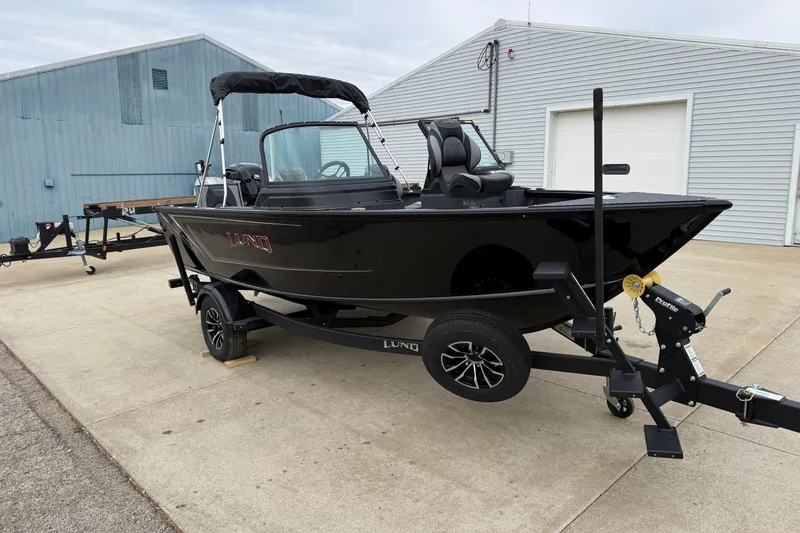 This is a 2026 Lund 1775 Impact XS Sport that is powered by a Mercury 115 4 Stroke. This boat is Black in color with Standard Graphics and Raised Red/Chrome Lund Letters with Complete Vinyl Interior with Aquatraction Floor Covering. This boat is equipped with the following options: Minn Kota Precision PCL-330 Charger, Luxury Package (Air Ride Seat Pedestals, Ski Pole Upgrade & Steering Wheel Upgrade), Aquatraction Floor Covering, Kicker Fuel Line, Top Hider, Lund Sport Top with Walkthru Curtain, and Lund Travel Cover. The trailer is a Lund Shoreland'r Single Axle Bunk Trailer with Bow Steps, Aluminum Mag Rims, Matching Spare Tire, Load Guides, and Retractable Tie Downs.
