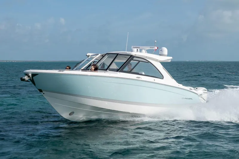 Introducing the stunning 2026 Regal LX36 Bowrider, a remarkable vessel that combines elegance and performance. With an impressive overall length of 37.33 feet, this new boat is crafted from durable fiberglass, featuring a modified vee hull shape that ensures a smooth and stable ride on the water. Equipped with powerful outboard engines, the LX36 is designed for exhilarating adventures, providing an engaging experience for both leisurely cruising and spirited outings. The thoughtful design includes ample space for relaxation and entertainment, making it perfect for gatherings with family and friends. This bowrider is not just about looks; it is engineered for ease of use, featuring advanced equipment for a seamless boating experience. The Regal LX36 is the ideal choice for those seeking a stylish and functional boat that promises unforgettable moments on the water. Embrace the thrill of boating with this exceptional model!
