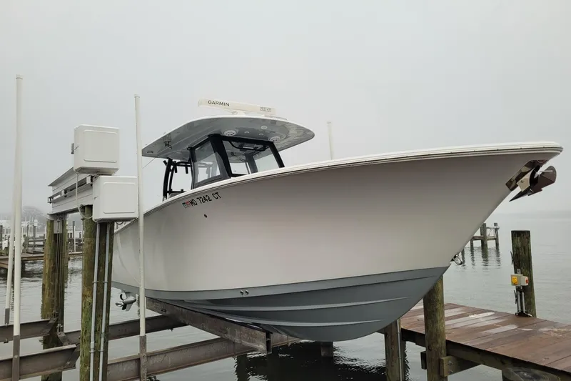 2022 Sportsman Open 302, Twin Mercury 350XL Outboards - Cold Fusion White (161 Hours), White Hull w/ Storm Cloud Bottom, Twin Garmin 8617 MFDs, Garmin 424 XHD2 Open Array Radar, 2 Garmin VHF Radios, Garmin Reactor Autopilot, Outriggers, Gull Wings, Console Cover, Electric Reel Outlets