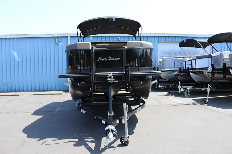 The SunChaser Geneva Sport 23 LR PSB pontoon is your one-stop shop for an action-packed day on the water. Packed with standard features, it offers both high-performance thrills and comfortable relaxation for everyone on board. The X-Treme PR25 Third Tube Performance Package ensures a smooth ride and confident handling, whether you're cruising leisurely or towing tubes for some exhilarating fun. The port side boasts a versatile swing-back transitional seat. This innovative feature lets you switch between a comfortable lounge chair for sunbathing and a forward-facing seat, perfect for enjoying the ride and conversation with fellow passengers. In the rear, a spacious bench seat surrounds a built-in table, creating a social hub for meals and catching up with friends and family. To top it all off, the Geneva Sport 23 LR PSB comes equipped with an integrated ski tow. This allows you to enjoy water sports like tubing, waterskiing, or wakeboarding, adding another layer of excitement to your day. This feature-packed pontoon is the perfect recipe for creating unforgettable memories, combining the exhilaration of on-water activities with the comfort and social aspects of a relaxing pontoon experience.