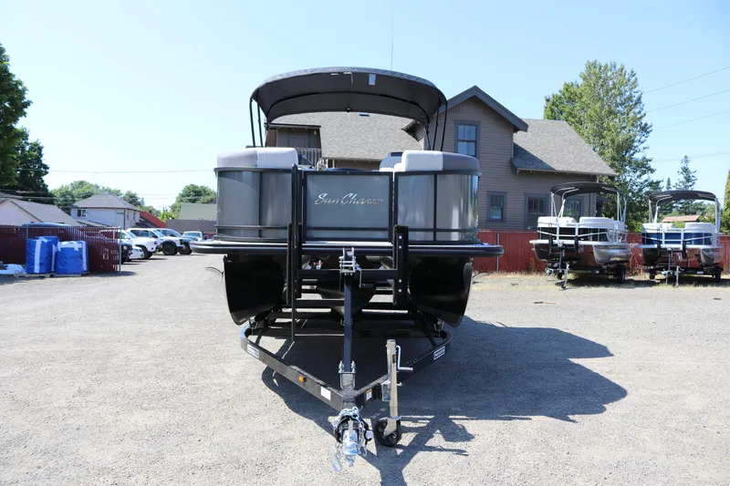 Experience the best of both worlds with the SunChaser Geneva Sport 23 SB DH pontoon. This feature-packed vessel offers exhilarating performance and luxurious comfort, making it the perfect choice for an unforgettable day on the water. The standard X-Treme PR25 Third Tube Performance Package guarantees a smooth ride and confident handling, no matter if you're cruising across the water or towing tubes for some adrenaline-pumping fun. The real star of the show is the spacious, swing-back rear seating. This innovative design transforms from a forward-facing seat, ideal for enjoying the ride with friends and family, to a large, luxurious rear-facing lounge - perfect for soaking up the sun in style. But the comfort doesn't stop there. The Geneva Sport 23 SB DH boasts both passenger and driver helm style seating, offering excellent visibility. Take turns captaining the vessel and experience the thrill of being at the helm. And to top it all off, an integrated ski tow lets you enjoy the exhilaration of water sports like tubing, waterskiing, or wakeboarding. With its perfect blend of performance, comfort, and versatility, the SunChaser Geneva Sport 23 SB DH pontoon is guaranteed to create lasting memories for you and your crew.