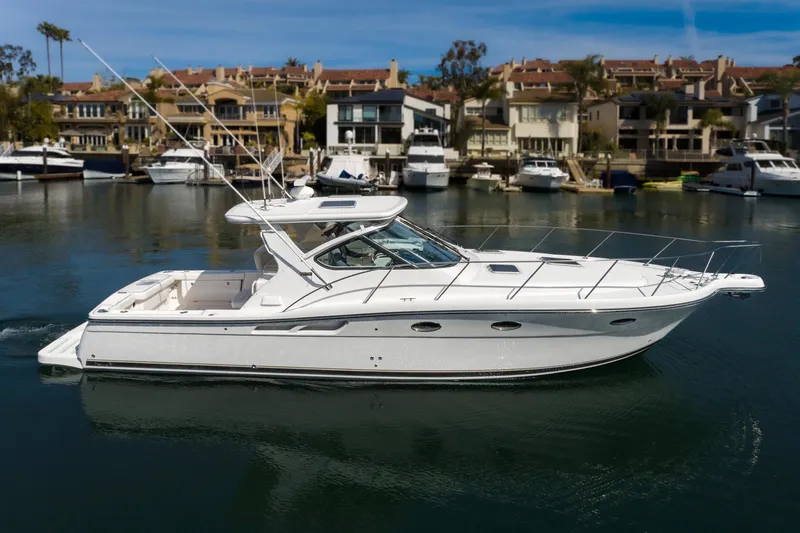 This example is particularly well-specified: twin Cummins QSB 5.9 High Output diesels producing 760hp total with just 633 hours, direct drive, and a Westerbeke 5kw generator with only 85 hours. Factory upgrades include a hard top, bait tank, and aft-facing cockpit seating - the fishing and cruising configuration done right from the start. The cooling system has been freshly serviced including aftercoolers and heat exchangers, and the boat was fully detailed in December 2025. Located in Newport Beach, California.