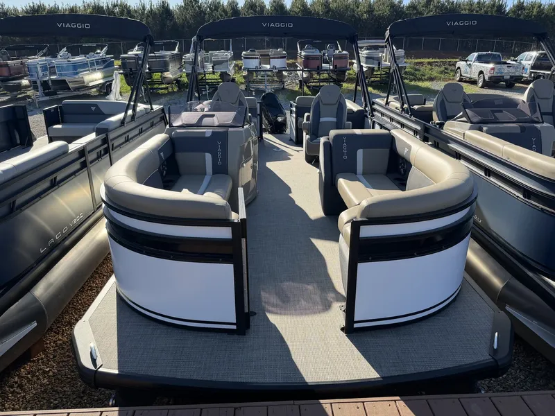 TRAILERS ARE NOT INCLUDED WITH OUR PONTOONS DUE TO SO MANY CUSTOMERS HAVE DOCKS SINGLE AXLE STEEL TRAILER $2999.00 SINGLE AXLE GALV. $3495.00 DOUBLE AXLE STEEL TRAILER $3995.00 DOUBLE AXLE GALV TRAILER $4795.00 BRAND NEW 2025 VIAGGIO X 22U WITH SUZUKI 140 25 INCH TOON PKG SKI TOW BAR STEREO AND BIMINI TOP SALTWATER PKG